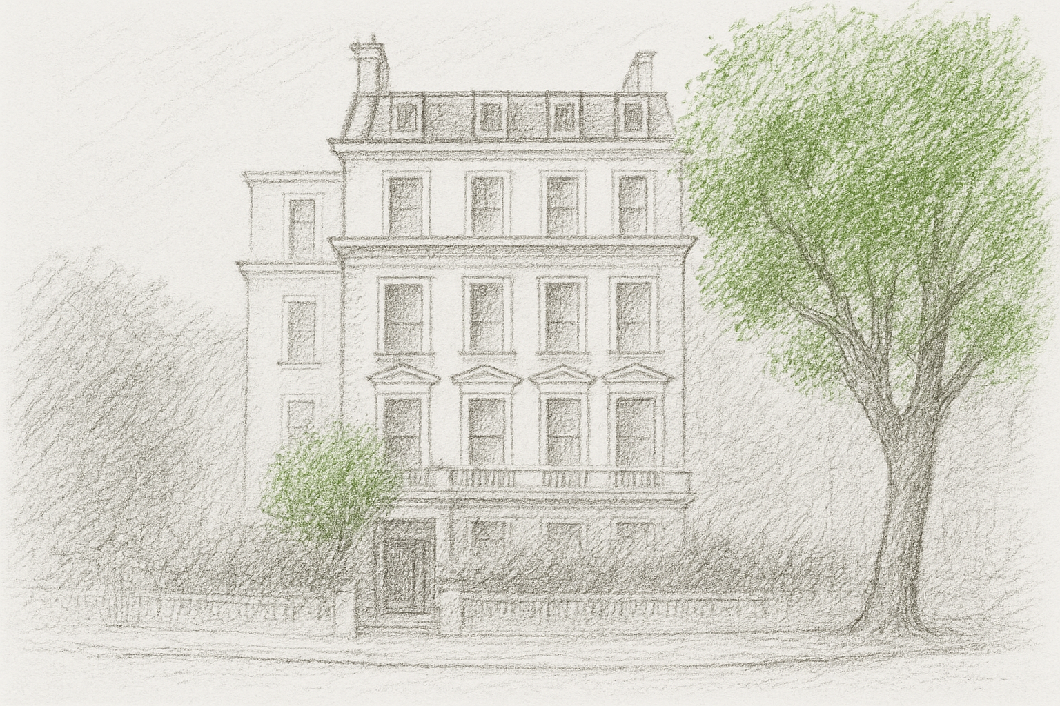 This Little Venice apartment, set in a Grade II listed building, is being renovated to respect its historic character while adding a refined modern touch. Tall ceilings and elegant mouldings provide a graceful framework, enhanced through a full renovation in line with heritage requirements.